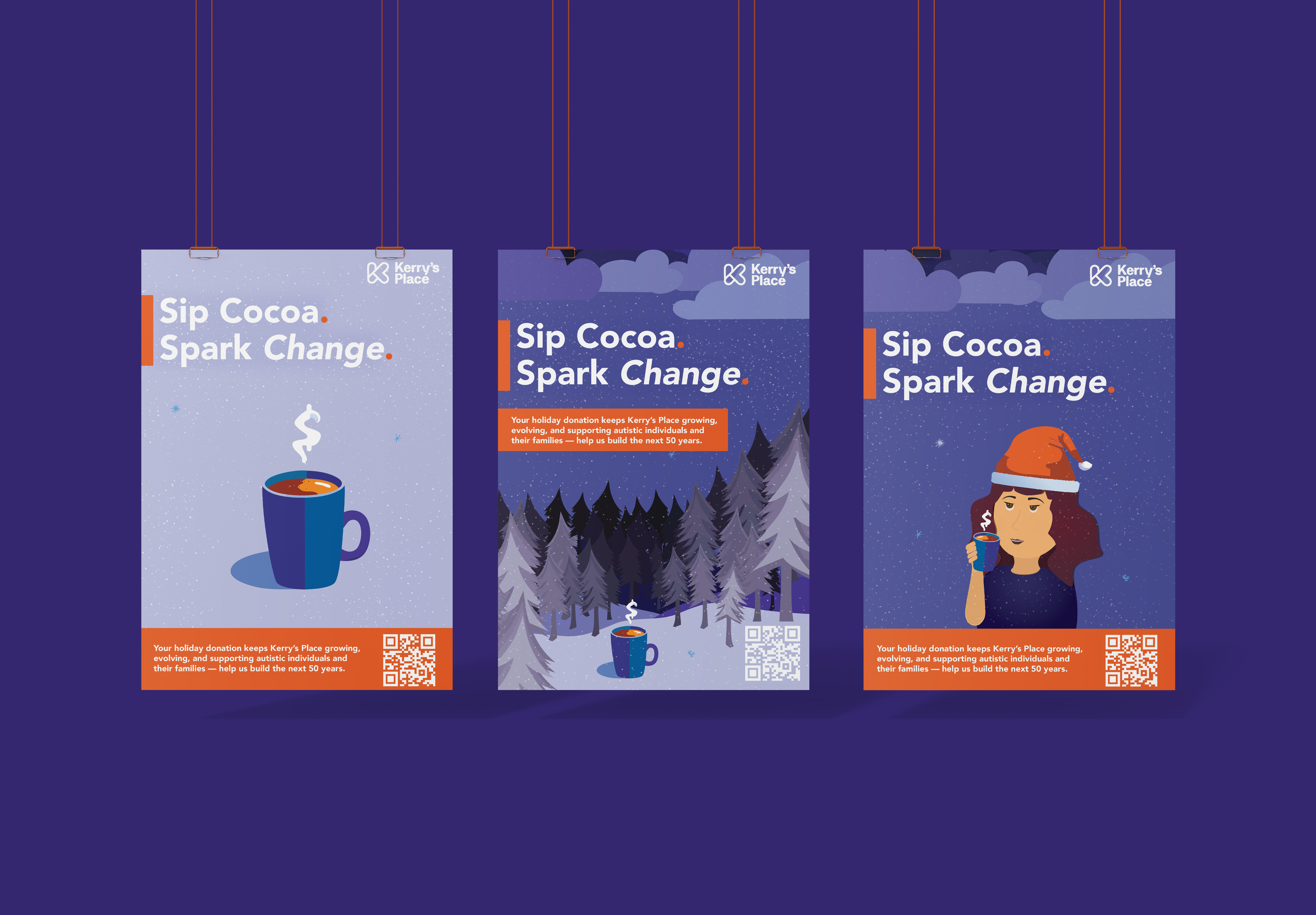 For this project, the goal was to create a fundraising campaign for Kerry's Place's 50th anniversary for Autism Awareness. The visual direction is playful, festive, and welcoming. The aim is to resonate with all age groups.